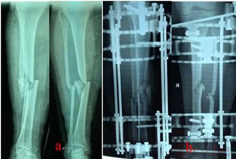 虽然骨折内固定治疗是临床骨科医生的首先选择,但外固定在高能量损伤、开放性骨折的治疗中仍发挥着不可替代的作用。Gianluca等采用早期跨关节外固定、延期内固定(平均6天)的方法治疗24例高能量损伤的胫骨平台骨折,其中C3型占58.3%,Schatzker V-VI占79.1%,最后没有1例出现深部感染,他们推荐这种治疗模式。一项系统性研究比较牵拉成骨技术和诱导膜技术治疗因Gustilo-AndersonⅢ型开放骨折导致的骨缺损,结果显示牵拉成骨技术骨愈合率更好、感染发生率更低,但作者认为仍需纳入更多高等级的证据来评价两种治疗方法。Giannoudis等人采用环形外固定治疗169例胫骨远端骨折,其中28%为开放性骨折,63%为关节内骨折,165例(98%)获得骨性愈合,拆除外固定后6个月按照Paley评价标准,踝关节评价优良率为62%,作者认为环形外固定治疗胫骨远端骨折愈合率高、严重并发症发生率低,是一种安全、有效的治疗方法。