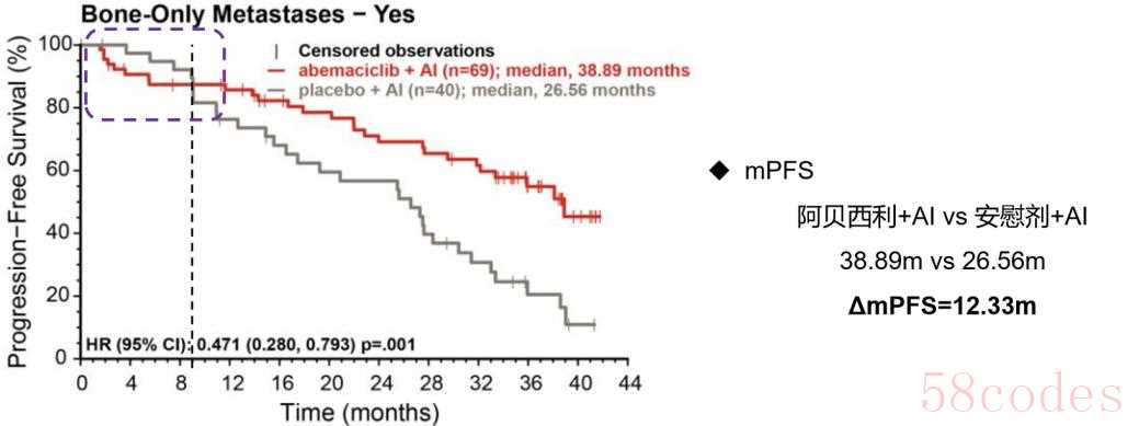 图11. MONARCH-3研究仅骨转移患者亚组PFS分析结果