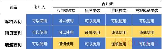 相较于阿贝西利,哌柏西利对于合并胃肠疾病、肝胆疾病以及高凝状态人群的限制更少;相较于瑞波西利,哌柏西利对于心血管疾病以及肝胆疾病人群的限制更少。
