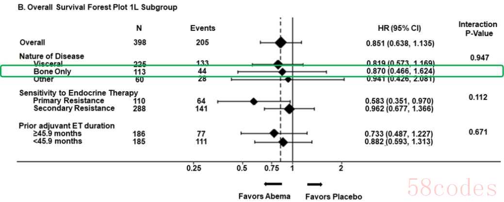 图12. MONARCH-2研究仅骨转移患者亚组OS分析结果