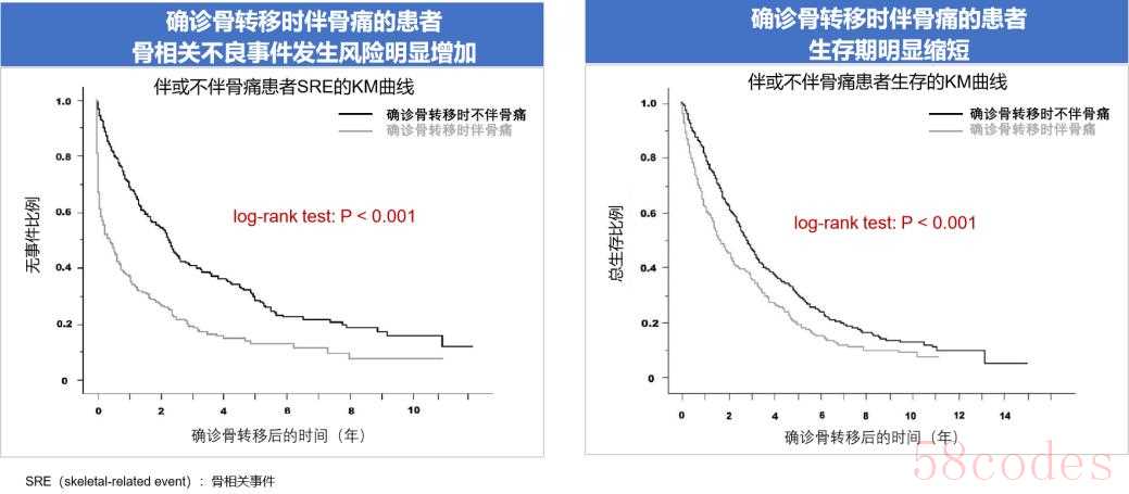 骨转移病灶易引起脊髓压迫,可能造成剧烈放射性疼痛。研究表明,患者骨痛发生率接近80%,且50%-90%的患者会出现顽固性骨痛。骨痛不仅会导致骨相关事件和疾病死亡发生风险增加,还显著缩短患者OS。