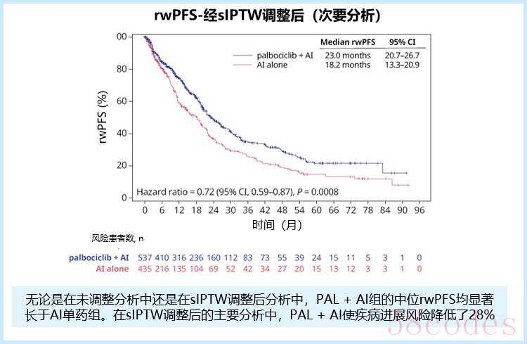 联合治疗组中位rwPFS为23.0个月(95%CI,20.7个月-26.7个月);