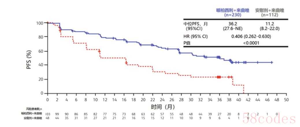 单药组中位OS为51.3个月(95%CI,44.8个月-65.1个月)。