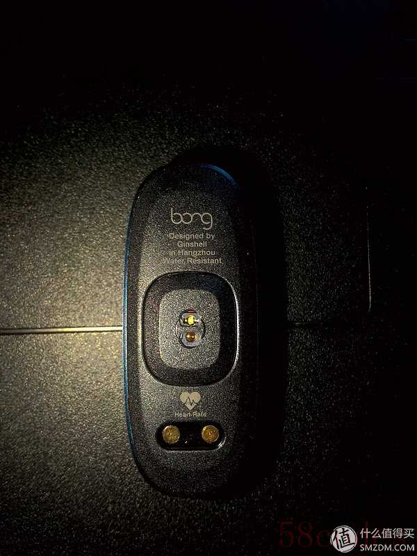反面比小米光感版复杂一些,原来是相比小米手环,Bong2s吧充电触电做到了背面而不是沿轴方向,这个设计只能给60分,一方面汗液会更容易腐蚀金属触点,另一方面会对手腕再撑不均匀的压迫......这个下一篇会讲。