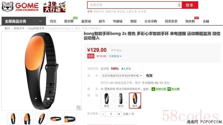 bong 2s 橙色 多彩心率智能手环 国美在线 抢购价119元>>购买链接