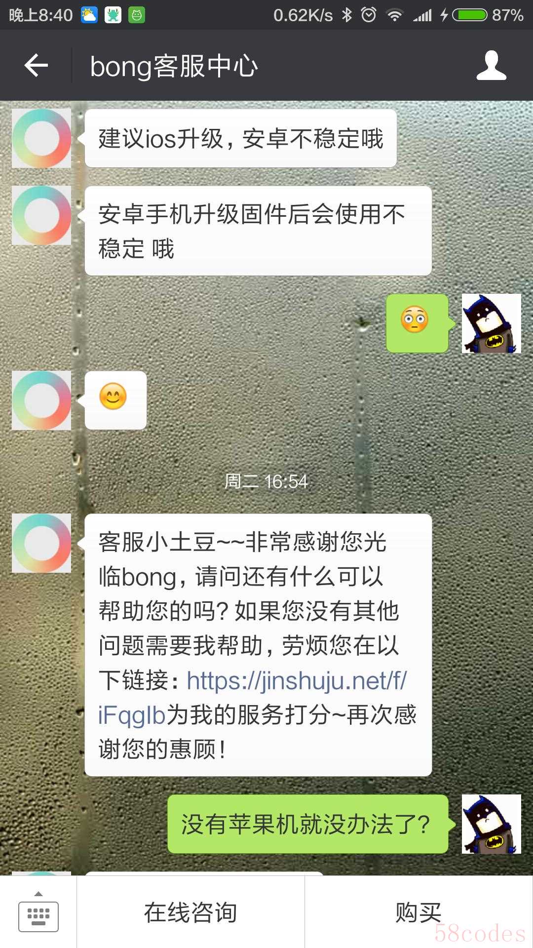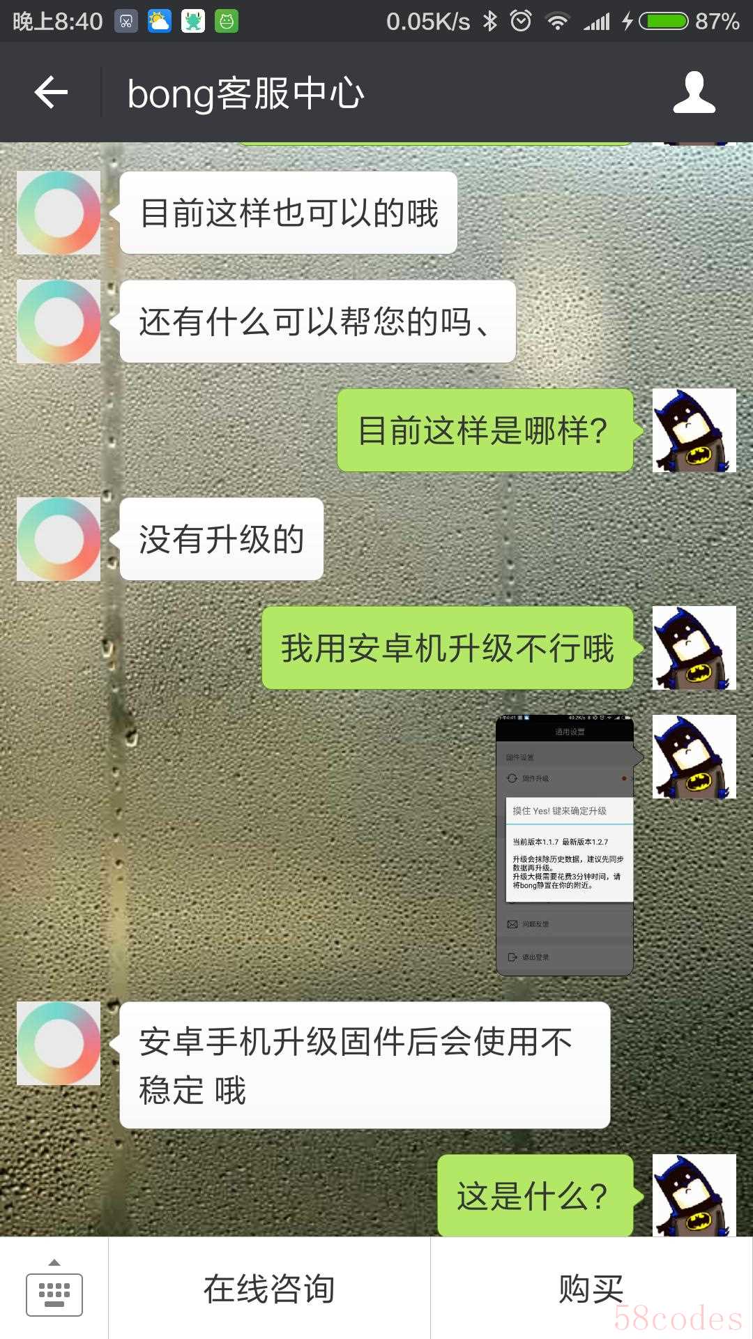 由于手环长时间未使用,决定升级下固件,发现该手环攻城狮很水,只能苹果机器升级,安卓机升级失败。可以水平一般,说安卓机不可以升级。