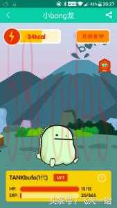 一个很有意思的功能——小bong龙,开启后必须要养这个呆萌的宠物,不想让他饿死就要多运动哦,用消耗的热量来换取他的食物。这个设定很不错,娱乐的同时,也保持了身体的健康。