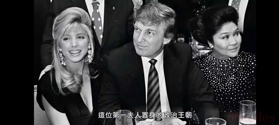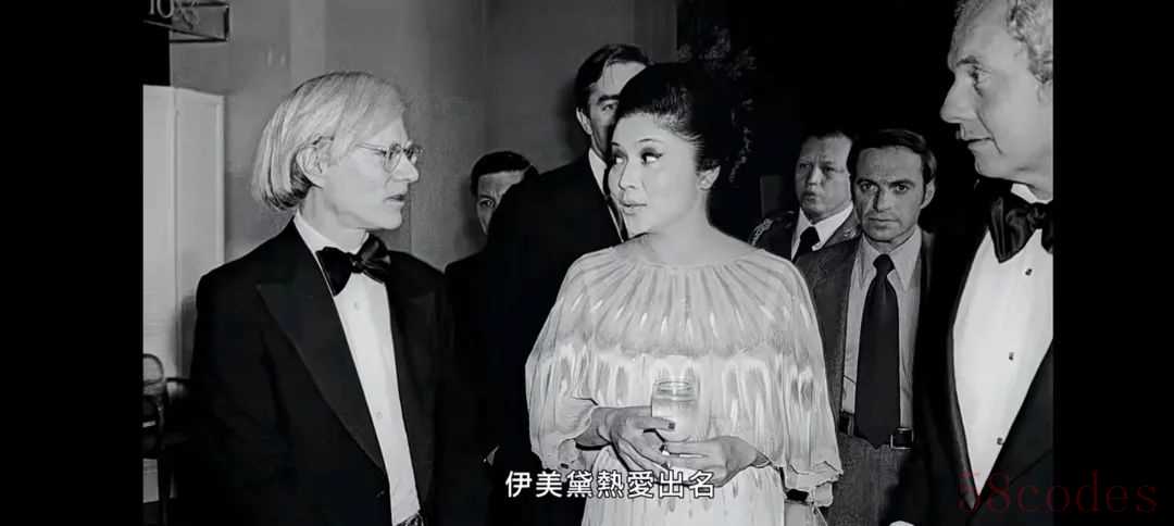 前总统老马科斯的夫人伊梅尔达热爱社交活动,访美时曾与特朗普、艺术家霍沃尔交流。图源纪录片《国王制造者》