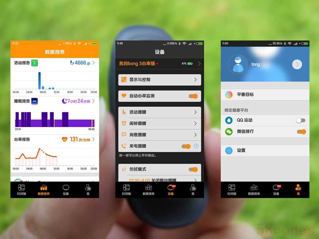 总结:作为一款新推出的手环,bong 3 HR是有着不小的提升,IP67级防水,除了灰尘不能进入外,常温下1米水深范围内都不会损坏,戴着游泳都没有问题,简直就是为运动而生,各项功能都围绕着运动优化,指导用户掌握自己的运动强度,只要坚持下去,就一定能达到锻炼效果;他的算法优化做得很好,记步比较精准,一旦绑定微信之后就会自动同步到微信运动,QQ运动也类似,十分的方便;睡眠监测比较准确,哪怕手机蓝牙关闭也能自动记录,手机开启蓝牙后会自动同步,一切都是那么简便。