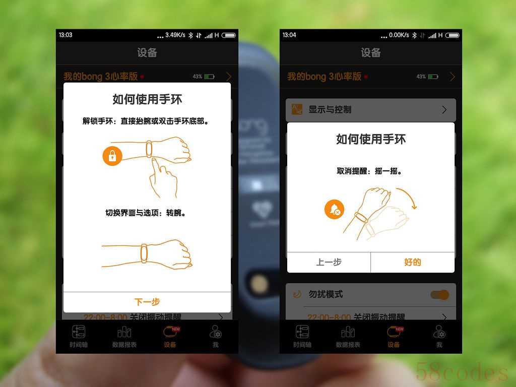 ▲初次打开app会出现一个向导,帮助用户完成手环设置。
