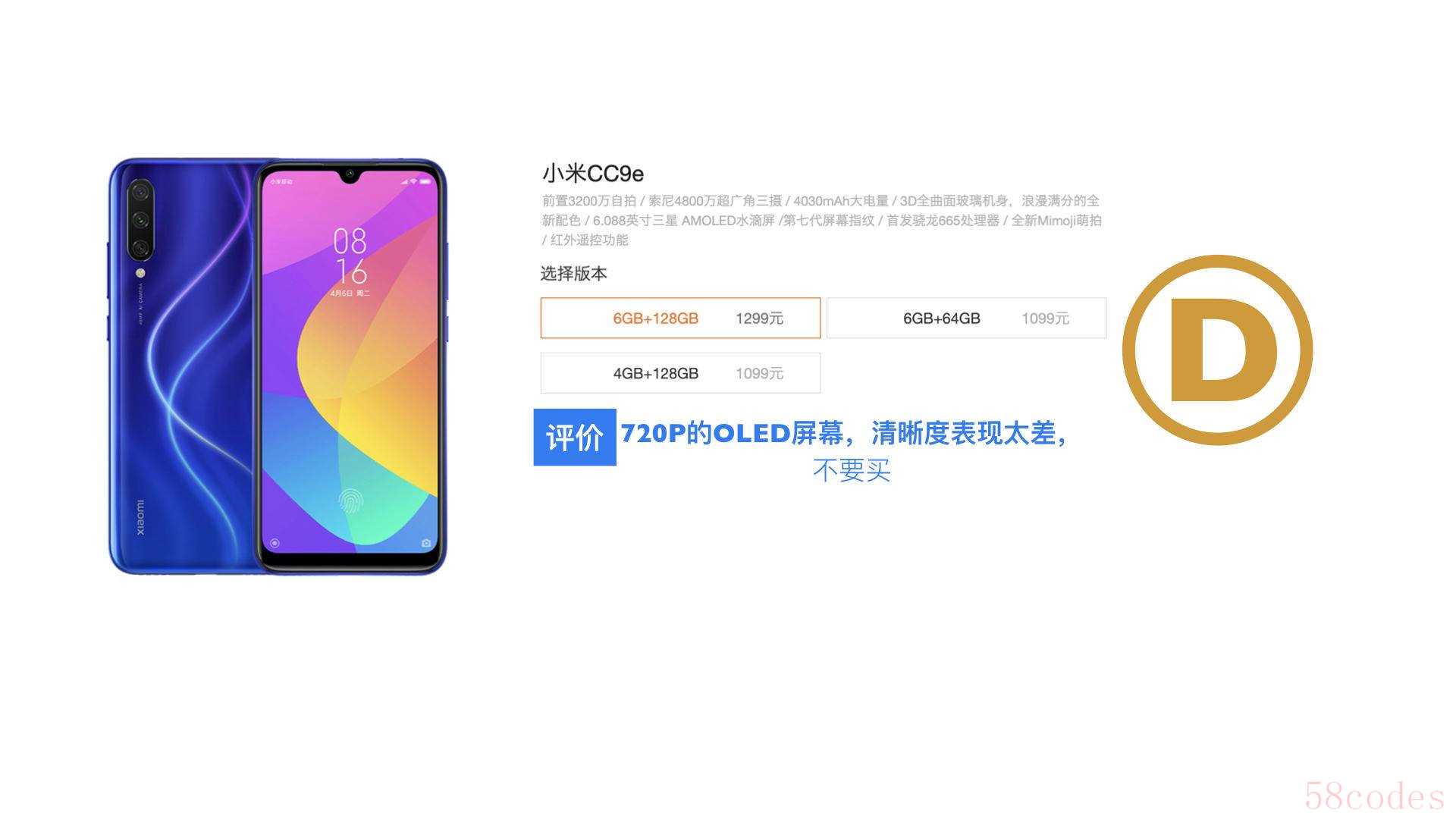 而CC9e,其实就一条,720P的Oled屏,清晰度表现实在太差了,就不值得购买