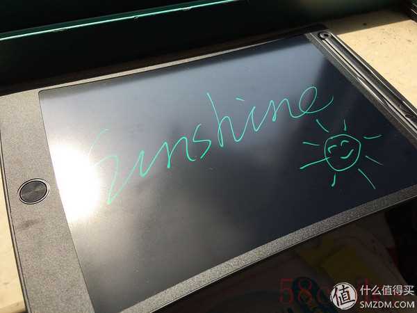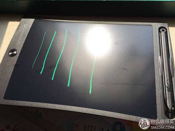 看一下手写效果吧,写出来的效果像荧光笔的感觉,相当清晰。机身维一按钮的功能就是清除内容。书写不一定非要自带的手写笔,硬物即可。