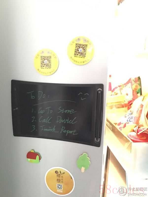 背面有两块吸铁石,可以吸在冰箱等物件上