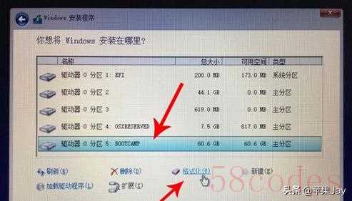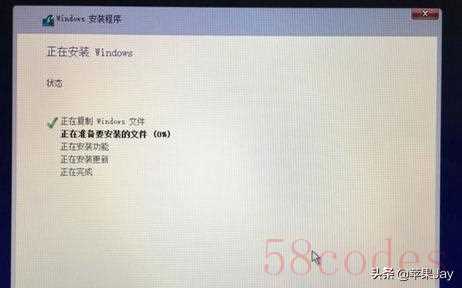 进度条走完会重启系统进入win的安装界面,选择安装win的版本(家庭版、专业版等自由选择)选中【BOOTCAMP】这个分区,安装在这个分区,选择 BOOTCAMP 分区并点按“格式化”。在大多数情况下,安装器会自动选择 BOOTCAMP 并进行格式化。根据步骤等待安装完成。