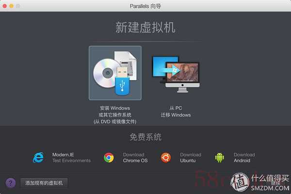 新建界面如上图,安装方式有镜像安装或系统迁移,支持的系统也比较齐全,不是个别专业小伙伴都可以满足需求了,其实还有一个Bootcamp迁移,没使用bootcamp所以没显示出来