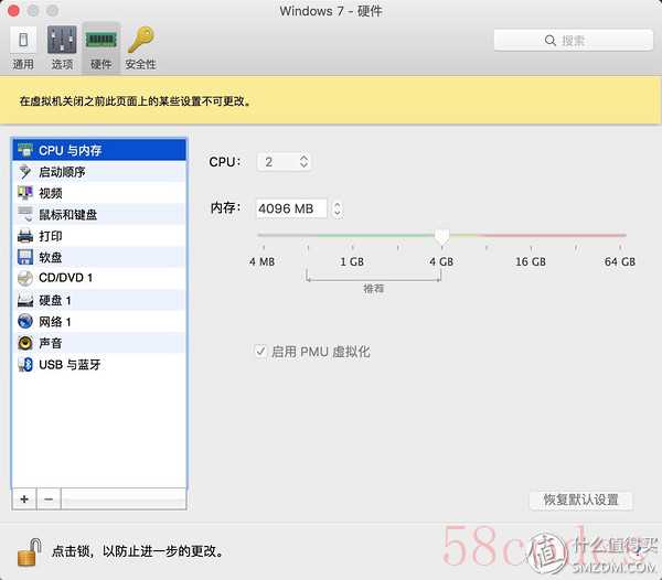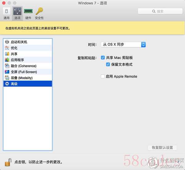 选项页签内主要调节虚拟机的功能,选项比较多,主要说几个常用的