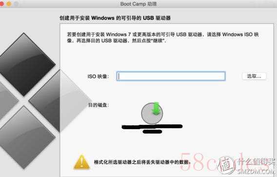 这里由于身边没合适的U盘,就没法截图了,借2个网图来做个说明,这一步会在选择了第一个选项即创建安装盘后出现,选择加载一下我们下载好的windows镜像即可,下面显示的是U盘的名字,注意制作启动盘是要格式化的,U盘的资料要提前备份好