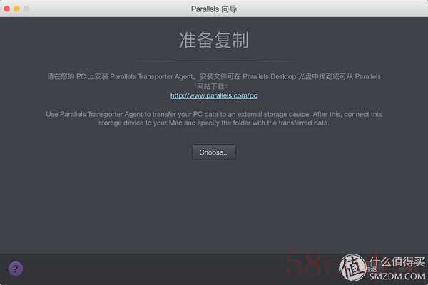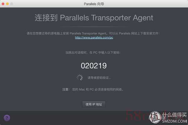 先说一下迁移吧,PD提供了一个工具叫Parallels Transporter Agent,可以安装在windows系统上,然后OSX启动上面的程序,像蓝牙一样匹配一个密码就可以连接上,把系统迁移到虚拟机里