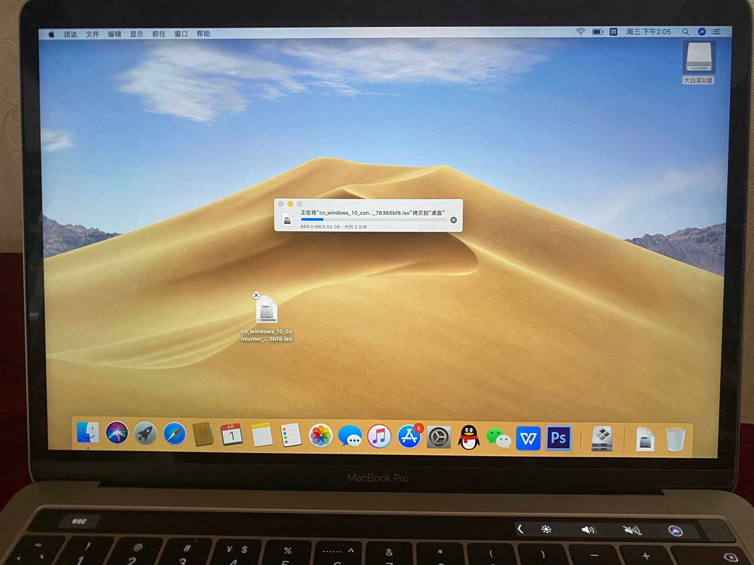 2、把Windows10的镜像拷贝到苹果电脑上,或者直接在苹果电脑里下载也行。实际上U盘也就是在这一步用了一下,如果是Macbook里直接下载镜像,全程都用不上U盘。