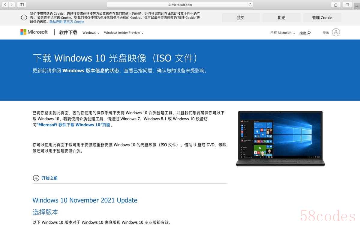 3、在弹出来的网页中,选择【从Microsoft下载Windows 10光盘映像(ISO文件)】,然后选择并下载适合自己的Windows操作系统。