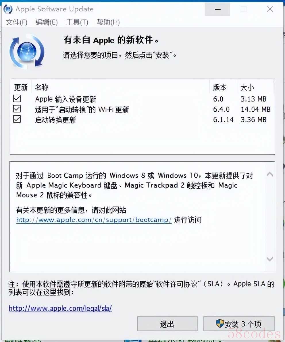 27、打开【Apple Software Update】后,选择【安装3个项】,然后在弹出的对话框中选择【是】。重启系统后MacOS + Windows 双系统就安装好了。
