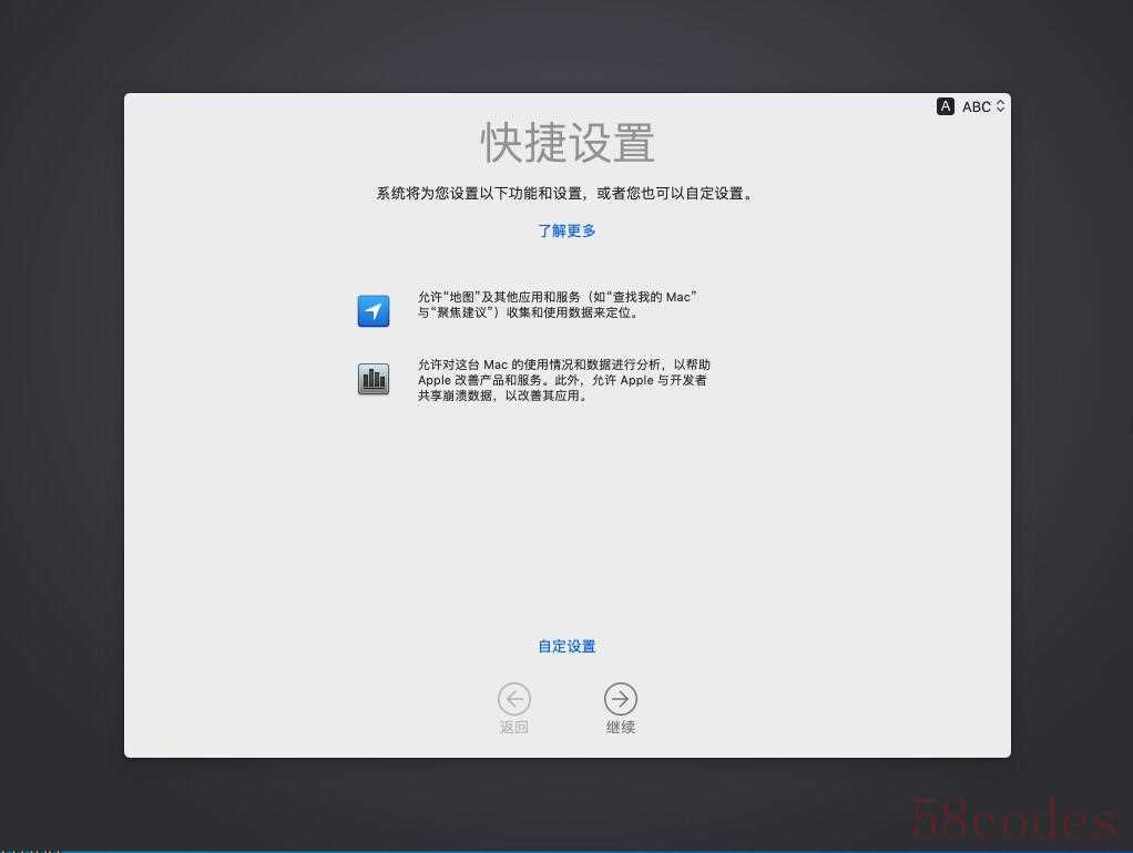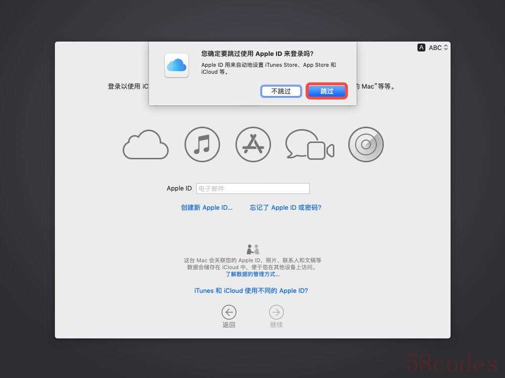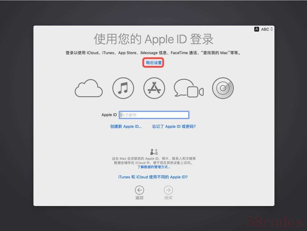 11、Apple ID登录设置选择【稍后设置】,然后选择【跳过】Apple ID账号登录,最后点【继续】。