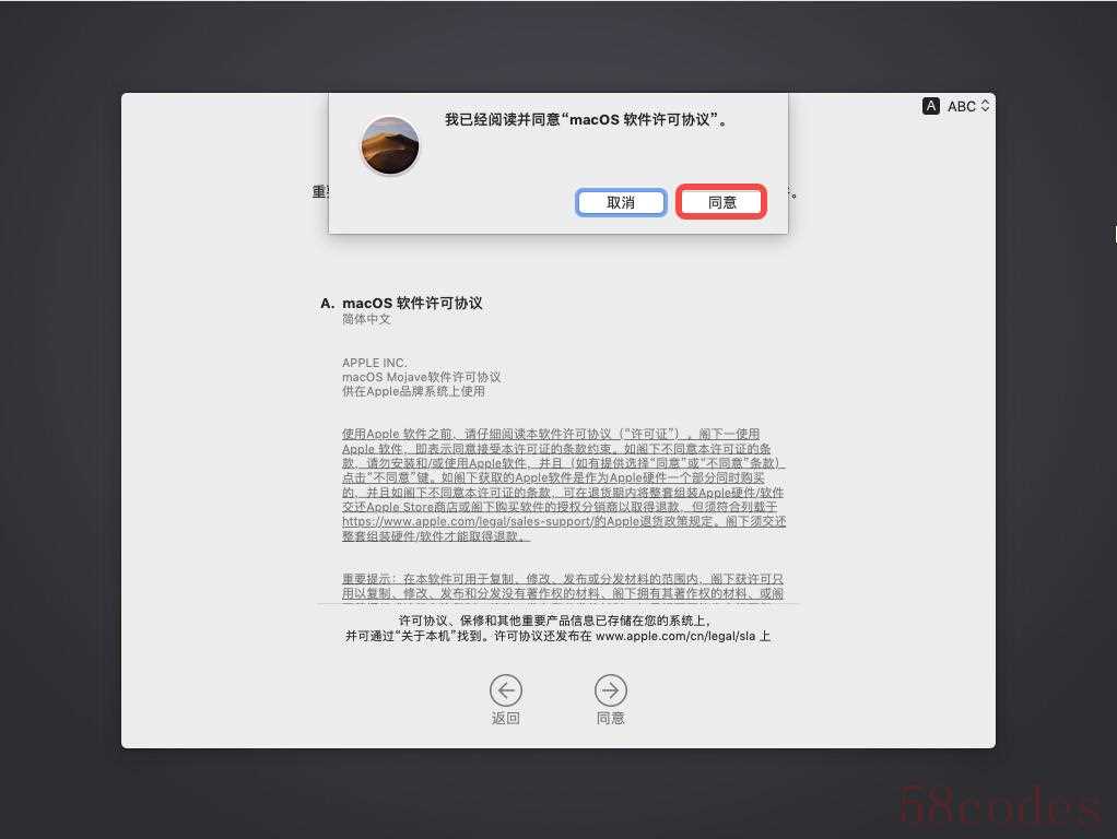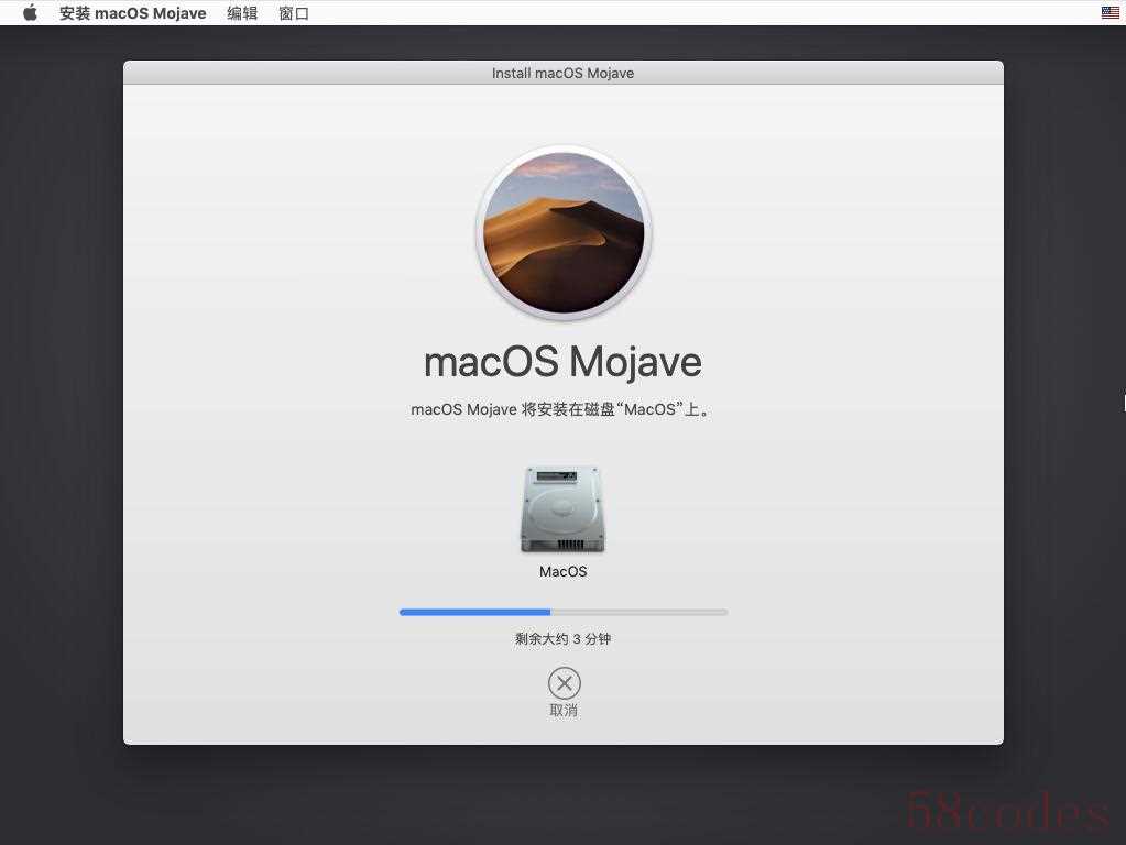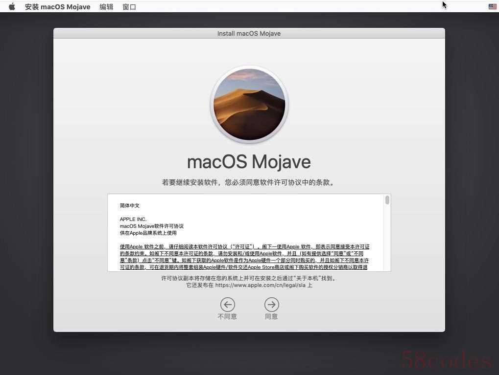 5、选择MacOS Majove安装到刚才抹掉的磁盘上,然后点【安装】。