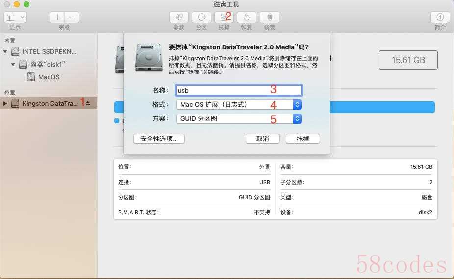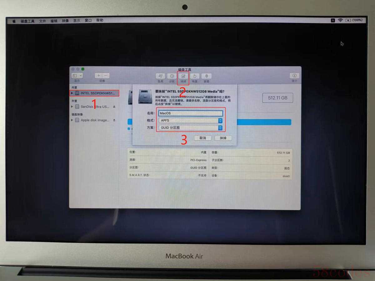 2、从【macOS实用工具】中选择【磁盘工具】,然后抹掉磁盘。