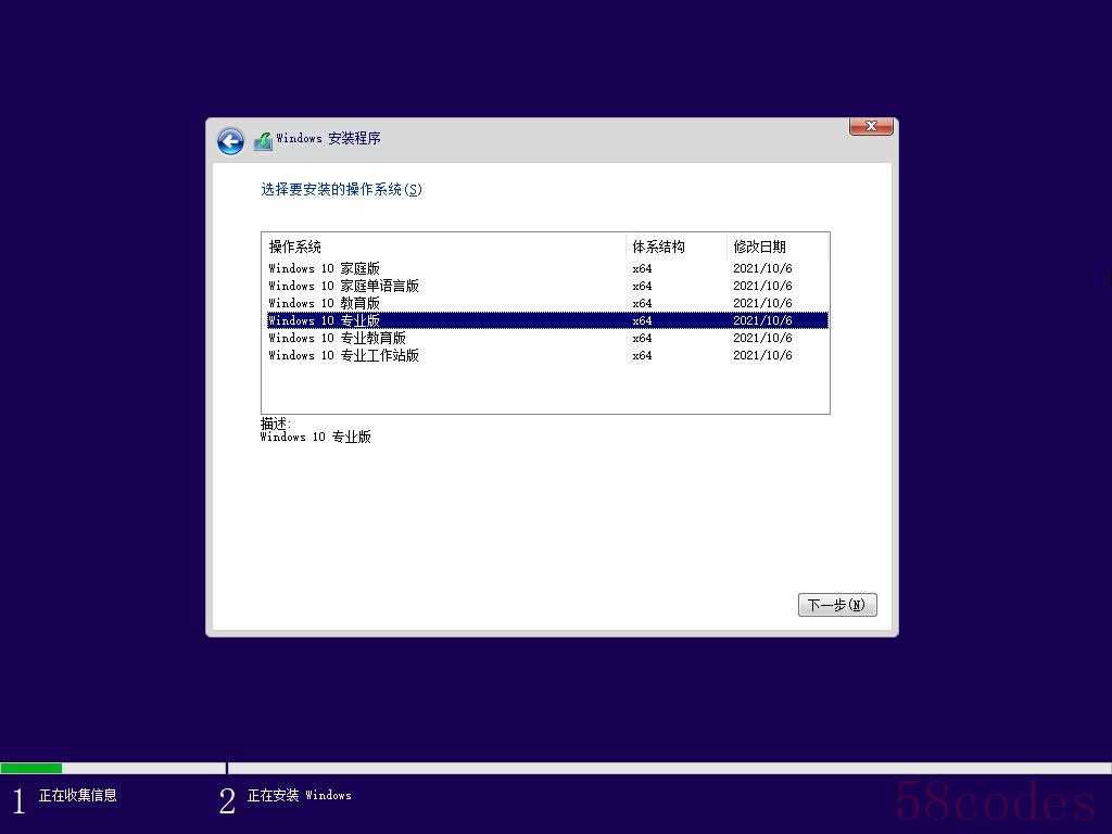 9、选择要安装的操作系统【Windows 10专业版】,然后点下一步。