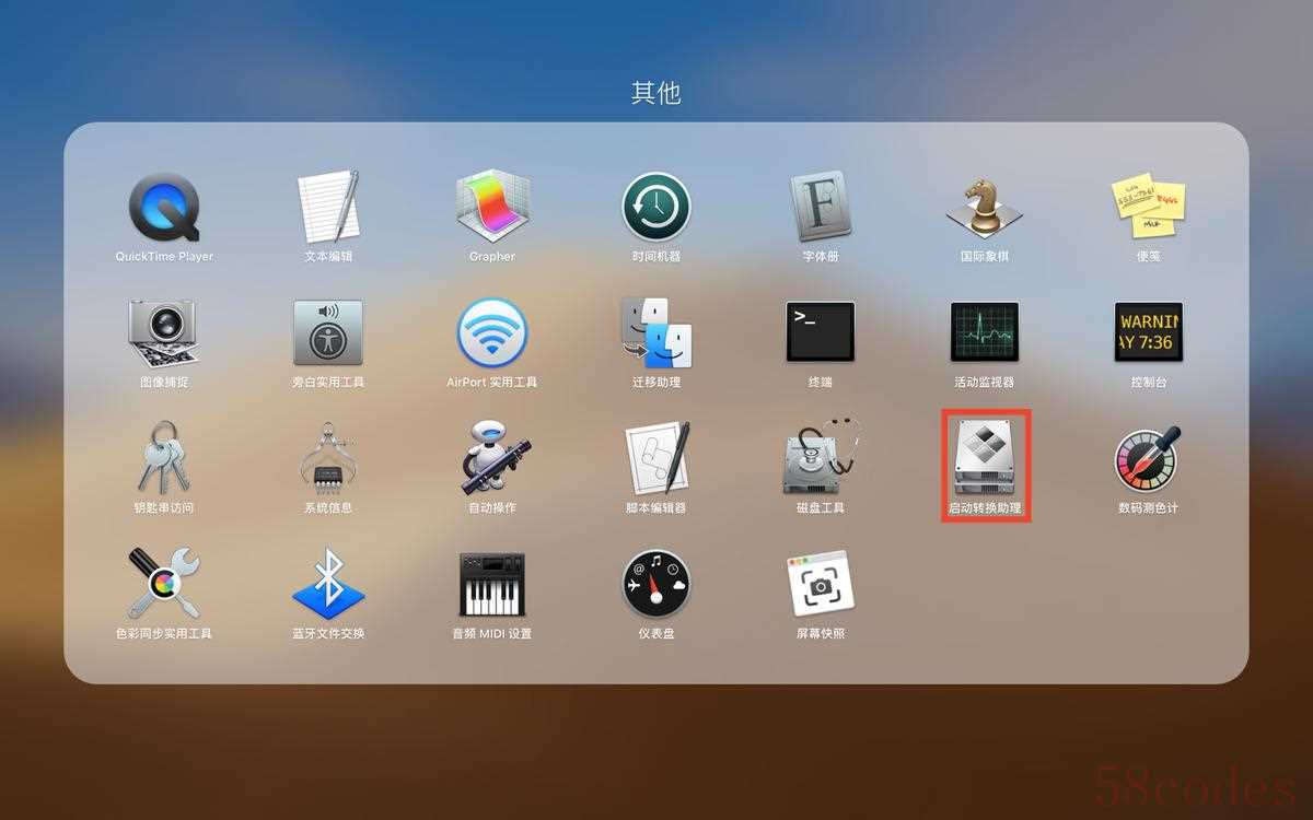 三、在MacOS系统中安装Windows 101、依次打开【启动台】→【其他】→【启动转换助理】
