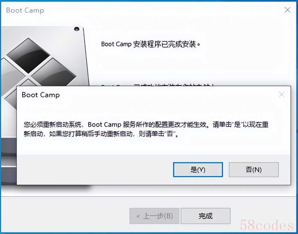 25、点击【完成】后,系统会弹出对话框提示重启系统,选择【是】。
