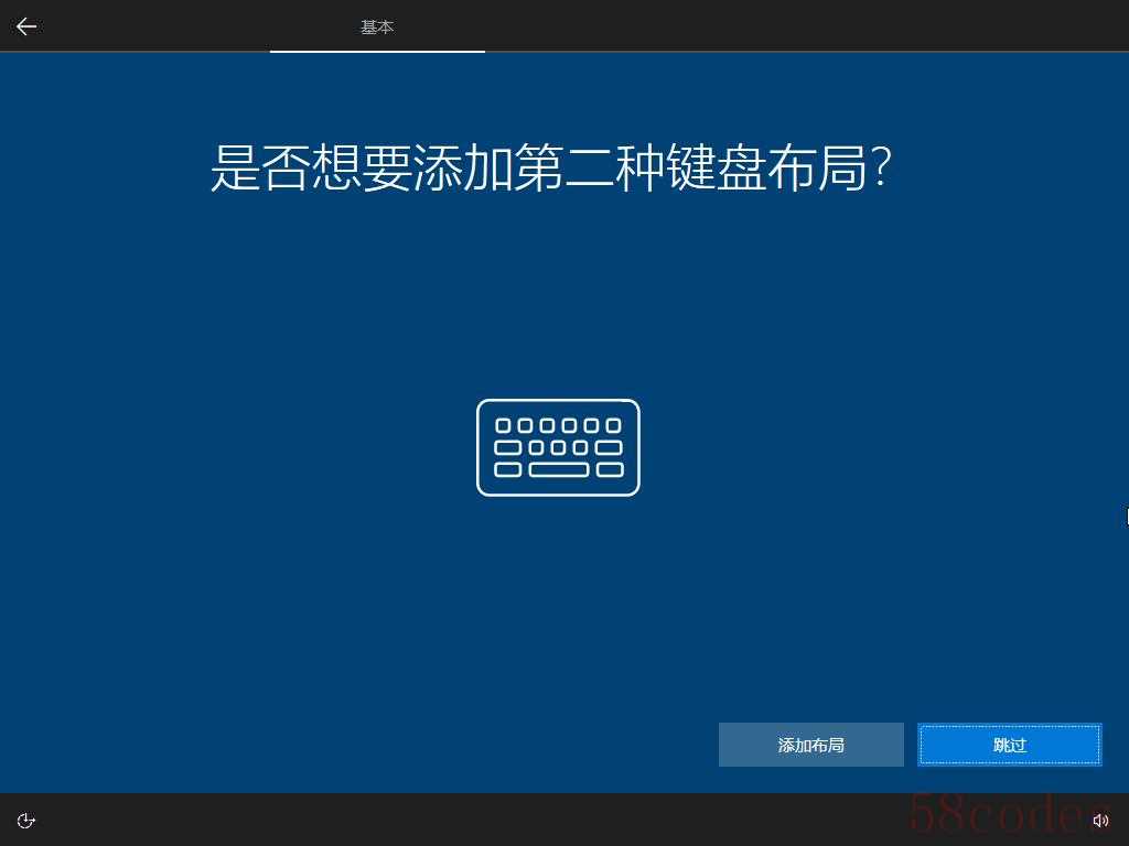 16、跳过添加第二种键盘布局,然后点【跳过】。