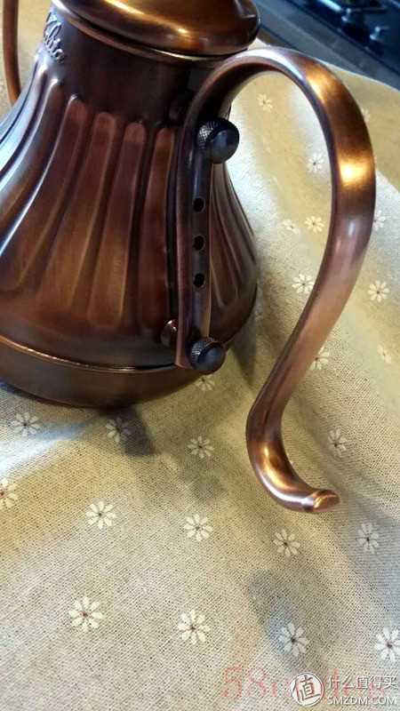 说一下使用感受,这个壶是900毫升的,实际到手就是很小一只,到了热水之后呢,整个壶会温度比较高,因为是铜的。杯盖非常烫,把手还可以,算是比较温热,不算烫手。倒水的时候水流非常细,流速也很好控制,对于我这种新手来说算是比较好上手的,唯一的缺点就是这个壶的壶盖比较松,冲咖啡到没什么,因为倒不了多少水,但如果随便倒杯水的话,壶倾斜角度越大,壶盖较松就会掉下来。。。如果是热水的话,壶盖很烫还不能扶着它,就比较不方便,所以在我看来算是个小小的缺点。至于壶盖松的概率,我之前摔坏的这个壶盖子就很松,这个也很松,所以我猜可能有些盖子是比较松的或者是压根没有紧的,这个我就不太清楚了。还有就是这个壶我觉得应该也得保养一下,毕竟这么贵,还是怕里面会生锈,准备上网查查铜壶怎么保养~