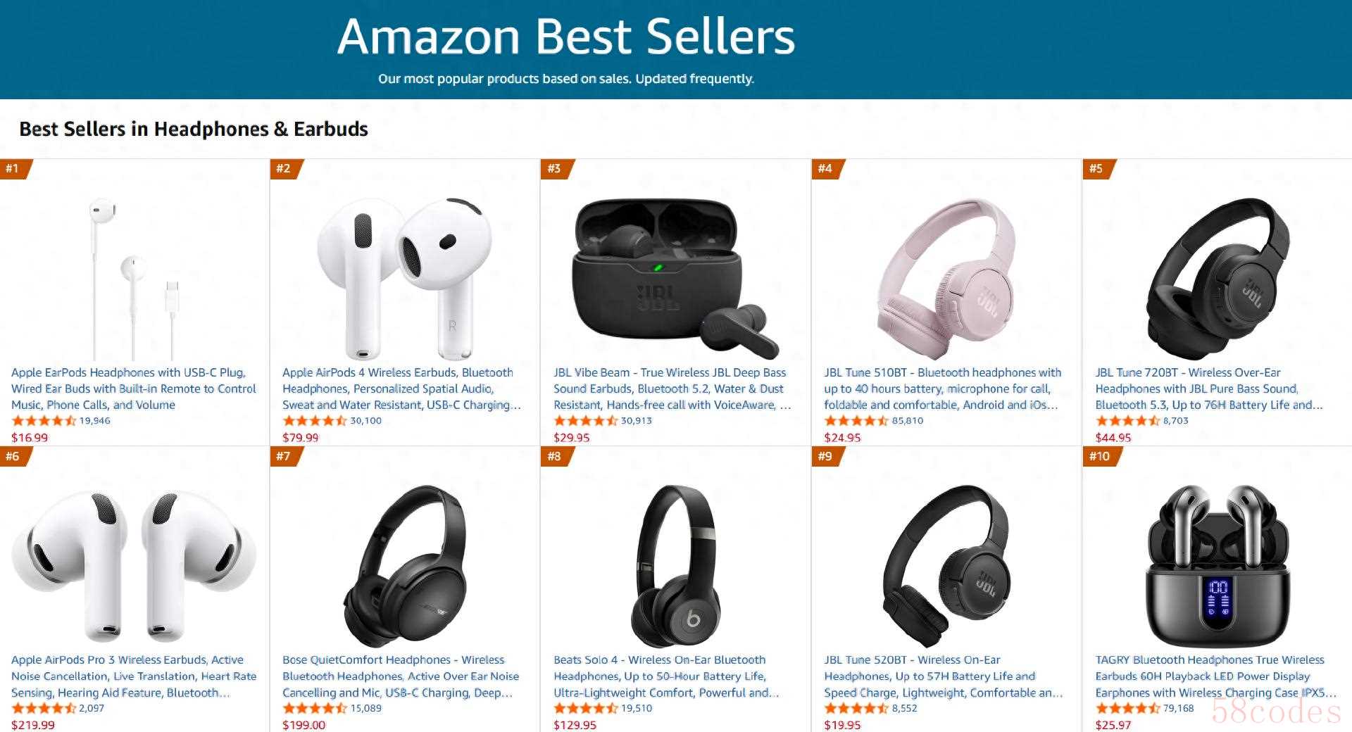 我爱音频网将从产品售价、产品口碑、产品互动量三个角度入手,去分析上榜耳机的产品特性与优势,以便更好的了解市场动态。以下数据截止至2025年11月21日,美国亚马逊耳机分类的销售排行榜前十的耳机(仅统计蓝牙耳机)。产品价格、评分、互动量均以统计时的数据为准。