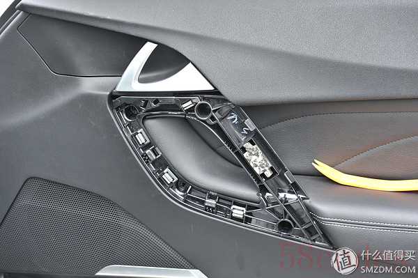 接着打开门把手,里面有四颗T20螺丝,取出。注意,先撬左边,直接撬,左边是塞进去夹紧的,不是卡扣。右侧是卡扣,需要左边拔起后向左推开。不用蛮力,很轻松打开。