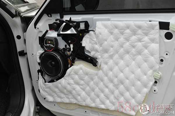 不放心的朋友还可以如图贴一些隔音棉。注意是隔音棉,不是黑色胶装的止振板。前者是起到隔音的效果,后者是止振用的。由于DS5的止振都已经使用了丁基橡胶作为止振材料,其实已经没有必要再加止振板了,上面有述。
