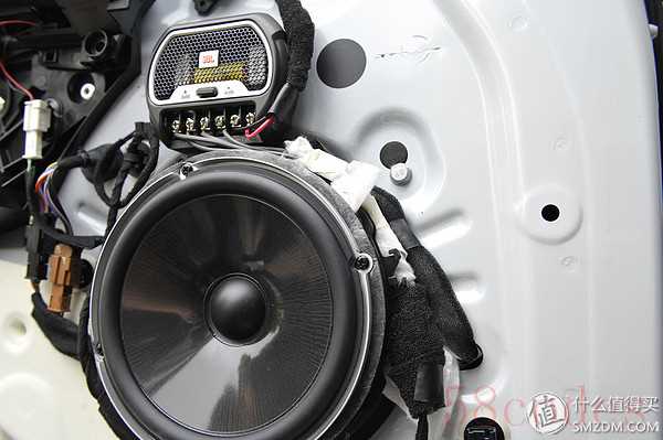 提一句,最科学的测试方法莫过于AB测试。那么po主是这么做的:如下图这样开了2天车,左门先换上JBL 608c套装,右门还是原车件。对比原厂,JBL替换后的扬声器,高音部分比原来提升明显,能明显区分乐器与人声的高音区别,原高音比较浑浊,耳朵贴近听也不太分辨得出声音种类。中音由于其他3个喇叭的干扰较重,不太听得出。低音部分确实体现出JBL美式音响的味道,如果原车是“动次打次”的话,改造后已经变成“共次当次”。不过由于po主厌恶低音,没有单独安装低音炮,这里低音的提升仅仅是对比意义的提升明显,不是说从此低音就沉了。