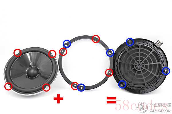 下图可见。因为JBL的螺丝是4个,呈90°分布的,然而车载的螺丝孔是120°的3个。本着无损的目的,这个垫圈还是得加上。
