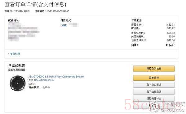 背面,显示JBL高音喇叭为GTO 18T,居然在美亚单卖55刀,赶得上套装价格了……
