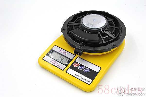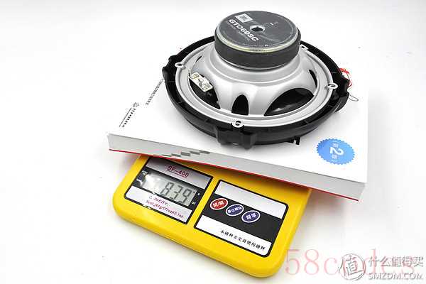 由于JBL的两款扬声器磁性太强,放在电子秤上已经不能正常工作。所以随手操起身边一本书作为垫子。注意,重量已经回零。