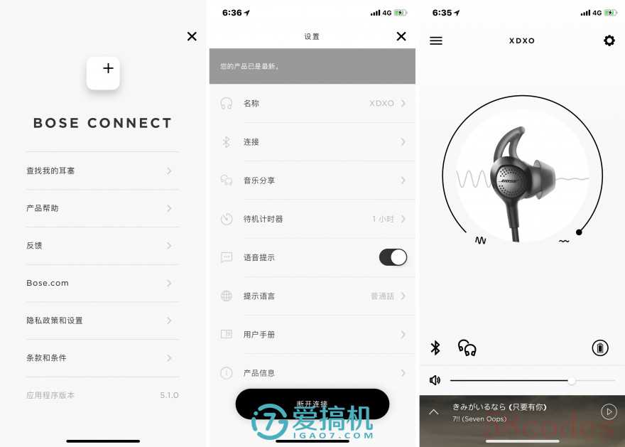 相比于WI-1000X,Bose QC30官方的App功能性将对简陋一些,主要是可通过App来调节Bose QC30的降噪强度。