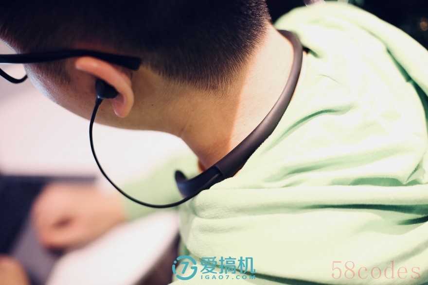 Bose QC30的重量在60~70g,采用O形颈圈设计,贴合人体颈部,整机的重心位于圆心的附近,颈圈的躯干富有弹性。由于Bose QC30没有耳线收纳的设计,因此它本身的线材较短,但在不同颈长的用户佩戴后也不会出现耳线太短的尴尬局面。