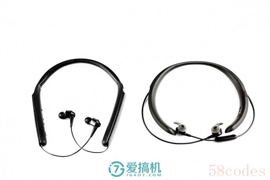 Bose QC30是两根耳线直接从颈圈上并出,无法收纳,也正是因为无法收纳,耳线的长度也较短。而索尼WI-1000X在颈圈左右两边采用隐藏式的收纳,用户在不使用的时候可以将耳机线材放入左右颈挂缝隙处。