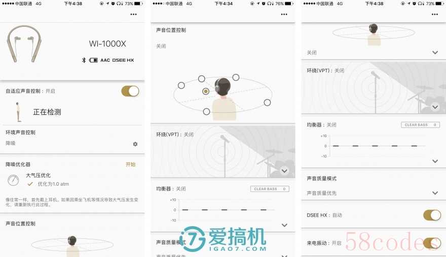 除了以上两项之外,Headphones App还支持声音位置模拟、环绕(VPT)、声音均衡器、声音质量模式等等音效调节功能,非常的全面。