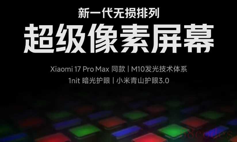 REDMI K90 Pro Max 搭载 6.9 英寸超级像素屏幕,采用全 RGB 排列,升级「小米青山护眼 3.0」,支持 1nit 极暗光护眼 + 全亮度 DC + 圆偏振光 2.0。