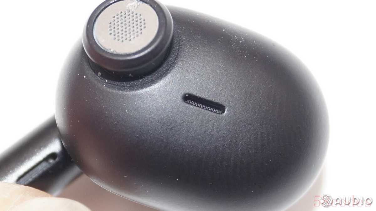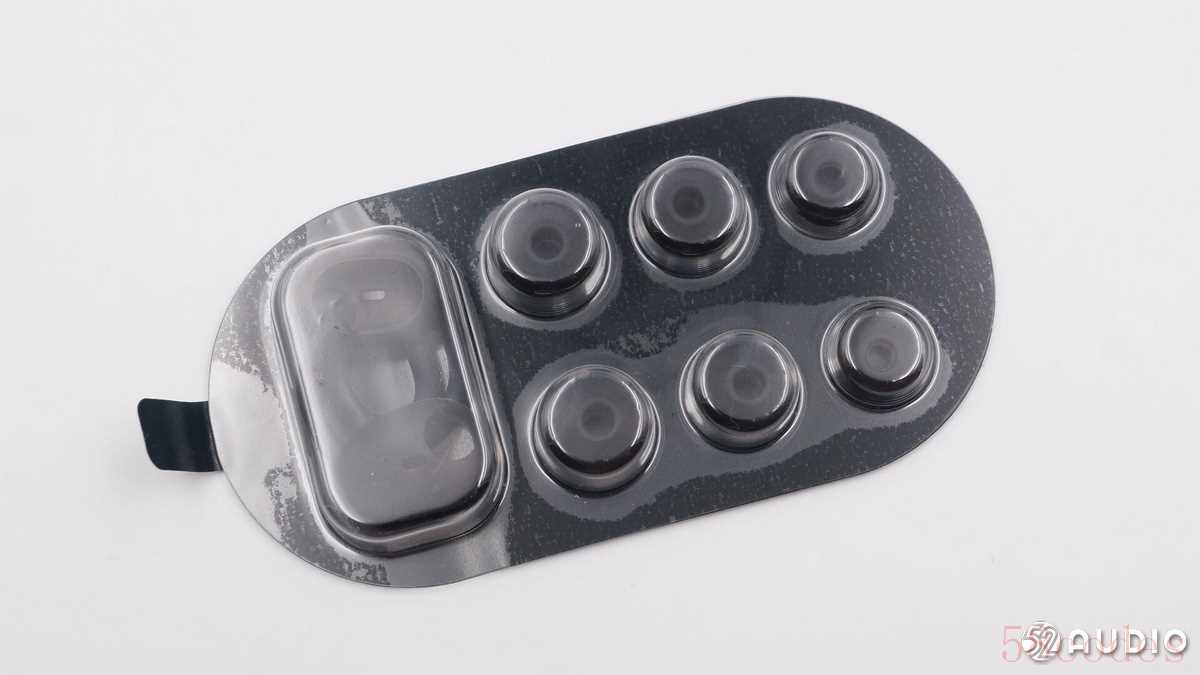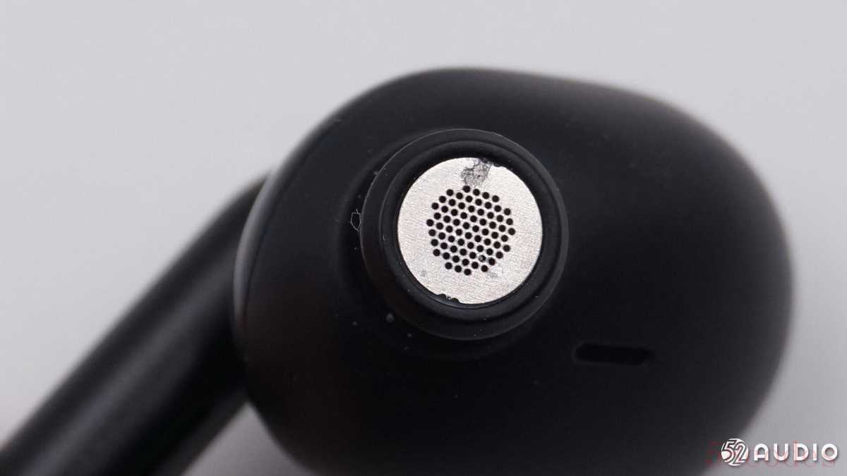 摘下耳机硅胶耳塞后可见防尘网孔,防止异物进入单元振膜上。