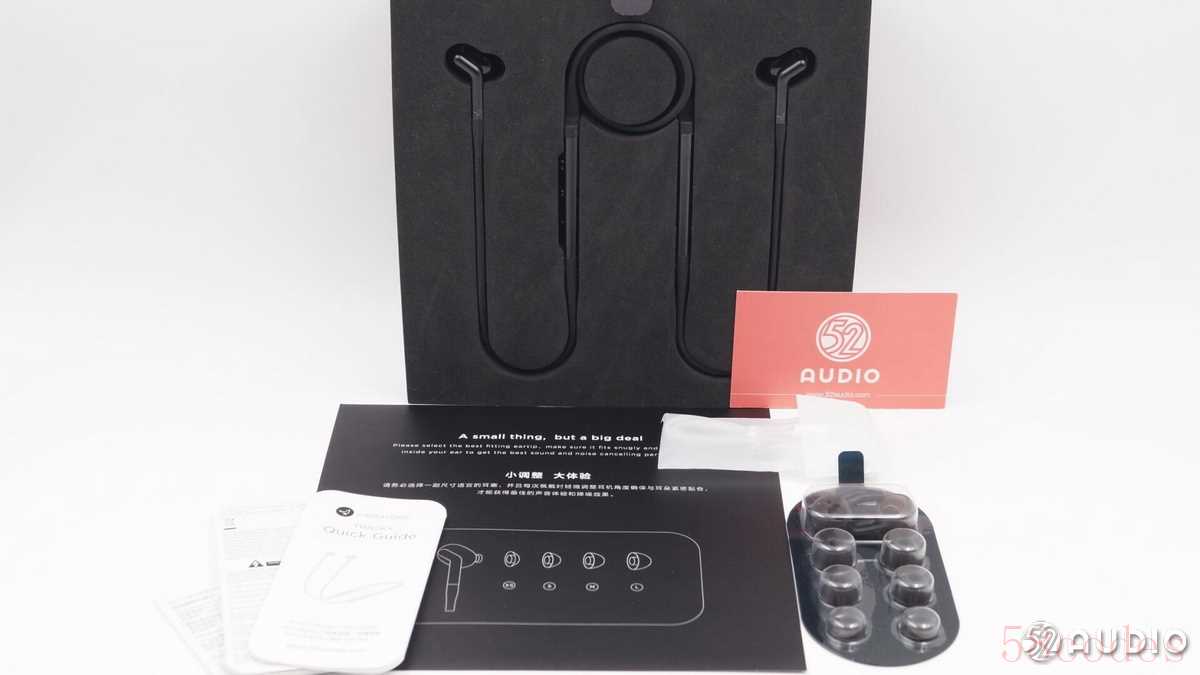 拆开包装,可见内部的耳机、EVA泡棉、耳套、使用说明等配件。