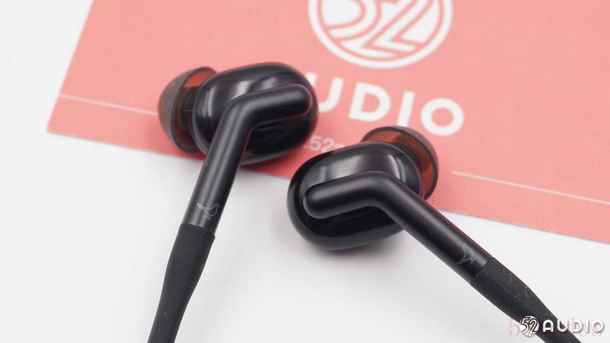小鸟TRACK+挂颈入耳式无线降噪耳机左右耳特写,设计方面,延续了家族风格,这个ID已经成为小鸟家族语言,融合到了有线耳机、脖挂耳机、TWS耳机当中。