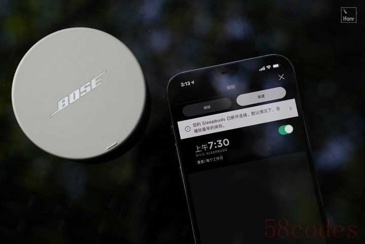 在软件方面,Bose Sleep 的 app 还是很简洁的。功能不复杂,交互页面也很美观,即便是一个「电子小白」,也能很快上手。常用的功能主要有两个,一是为音效播放定时,用户可以选择播放时长,或者整晚播放。二是设置闹钟,可以给耳塞添加多个闹钟,而且闹钟的听感有点像「全景声」。我第一次听到的时候以为是房间里的某部手机在响,给人的空间感很强。