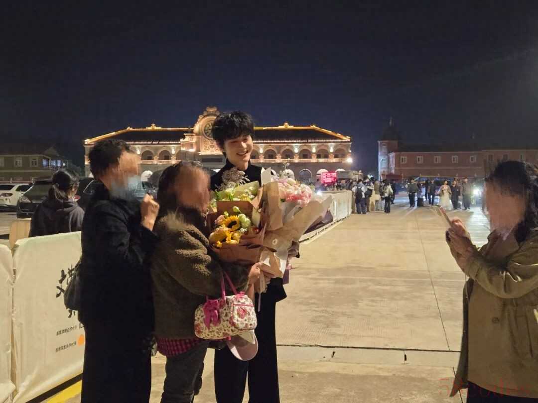 11月初横店短剧活动的现场有过这样一幕——四五位从外地赶来、看起来已经五十余岁的中年女性,围守在短剧演员离场的通道出口,她们手捧大束鲜花,身旁还放着装满应援物料的行李箱。